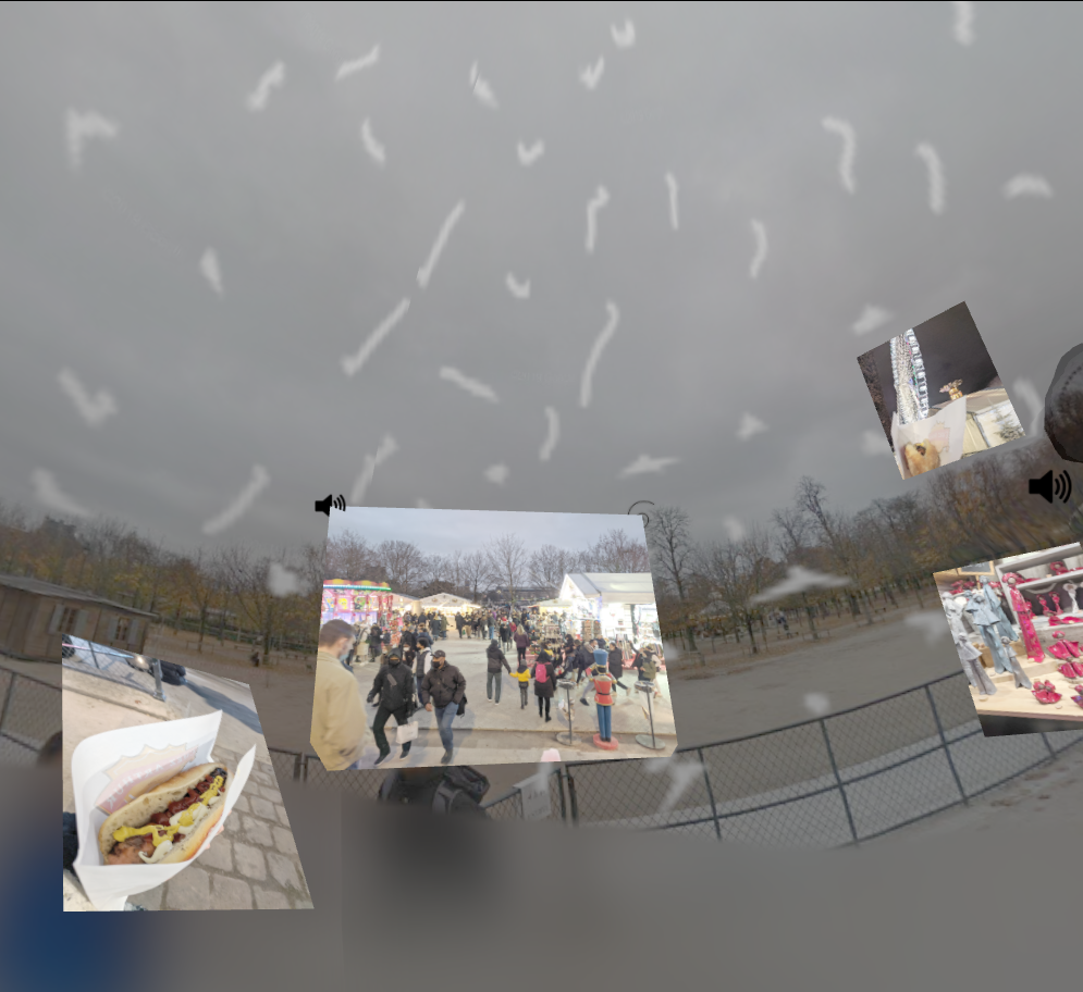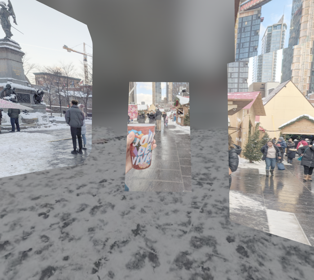 This visualization makes heavy use of blurring to conceal parts of the surround image that do not match with memory, due to the surround image having been taken at a different time than the Market photos.